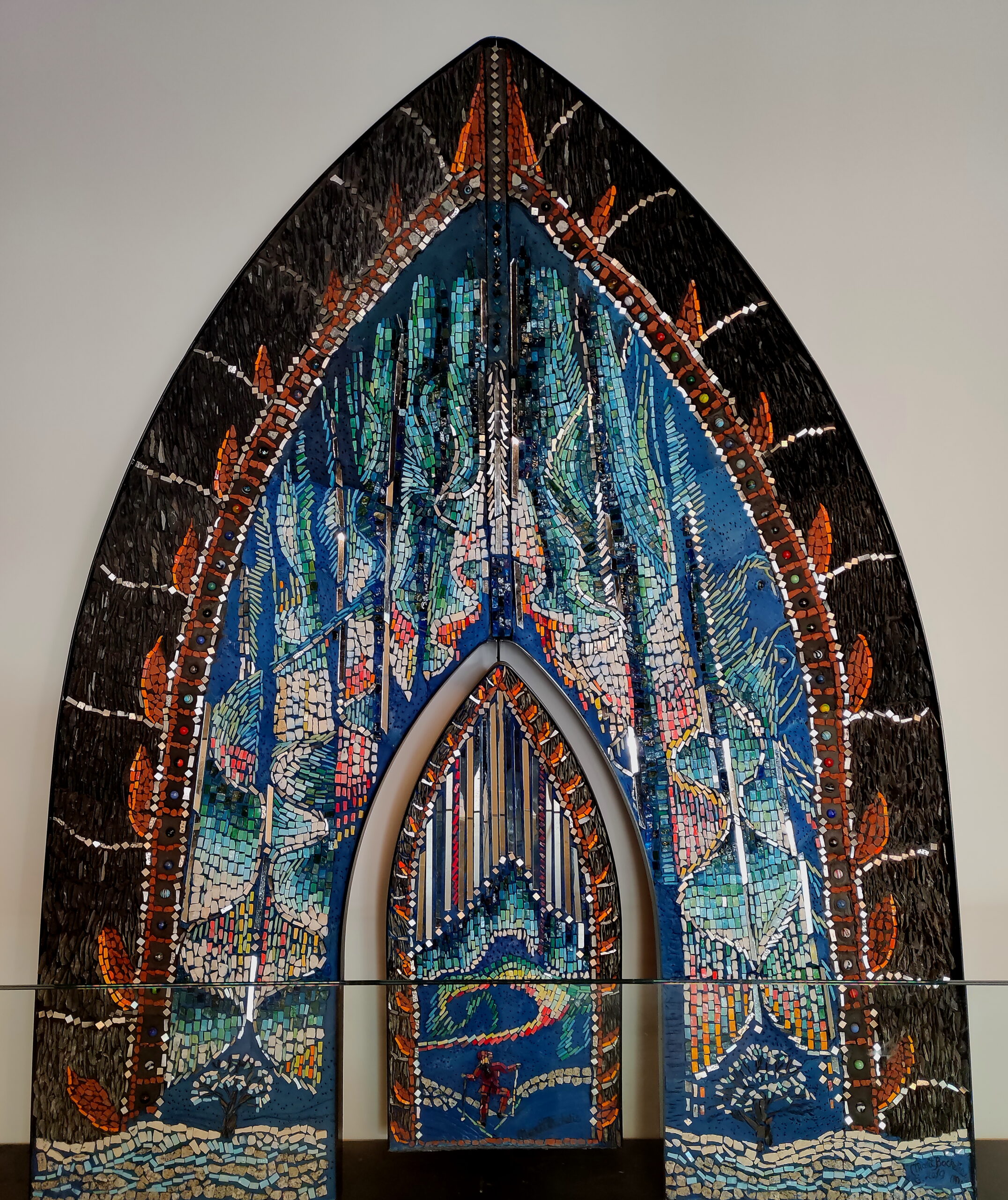 Am nächsten Tag war das Wetter trüb und wir wollten über die Brücke in Richtung «Arctic Cathedral». Albrecht hatte den Sherpaweg, «Sherpatrappa» in’s Auge gefaßt, der auf den Hausberg «Storsteinen» führt. In der Cathedrale war gerade eine kirchliche Veranstaltung und so mußten wir draußen bleiben.